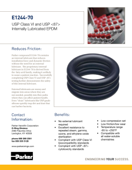 FDA and USP Class VI O-ring materials for life sciences Parker Compound Polymer Hardness Color Temperature Range F Service EJ280-70 EPDM 70 Black -70 to 250 FDA USP VI. Moulded O-rings class 1 less than 10 furnace black These can be produced in all.